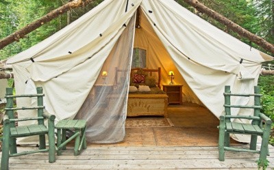 *Глэмпинг – новый вид экотуризма. Означающий буквально «гламурный кэмпинг», когда в традиционной палатке организуется люксовый интерьер, так же такой отдых сопровождается сервисом гостиничного уровня.
