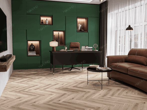 Имитация дерева - это красивая фактура для напольного покрытия. Особенно, если таким покрытием является кварцвиниловая плитка Stor 1034-02 из коллекции Lagom Parquet LVT от Norland. Текстура максимально напоминает уютную текстуру дерева, обладает такой же рельефностью, теплотой, влагонепроницаемостью.