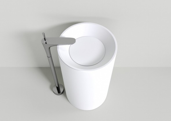 Эту напольную раковину отличает особый дизайн чаши со сливом по периметру и отсутствия крепления для смесителя. Смеситель к этой раковине крепится либо на стене, либо на полу. Скрытые за каменным кожухом сифон и канализационный слив, не будут отвлекать Вас от восприятия композиции раковины, которая сама по себе уже может стать украшением любой ванной комнаты. Высота этой раковины 90 см.