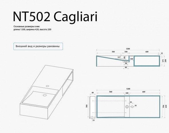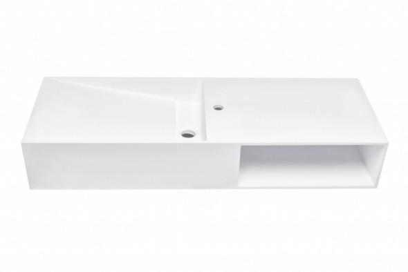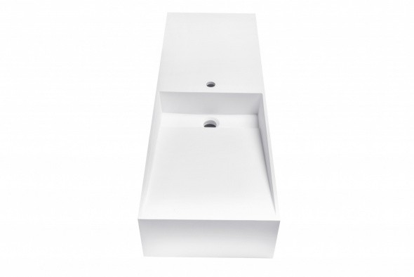 Уникальный дизайн раковины Кальяри разработан специально для людей ценящих нестандартные решения. Прямоугольная раковина из искусственного камня разделена на две части смесителем. Одна часть представляет собой непосредственно чашу раковины, другая – своеобразную полочку, в которой удобно хранить мыло, полотенце, зубную щётку и прочие предметы гигиены. Слив этой раковины оборудован так же нестандартным образом, и представляет собой платформу для декоративной каменной накладки.