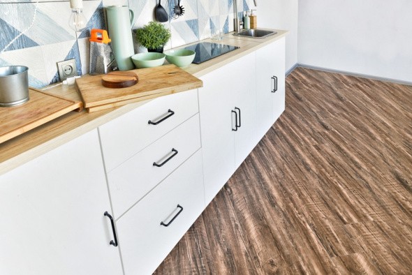 "Кроме того, что отделочный материал имеет привлекательный вид, он еще и нивелирует основной недостаток древесины. Главная особенность плитки – абсолютная водонепроницаемость. Пол отлично моется, с поверхности легко убрать грязь и следы от фломастеров. В отличие от кафельной плитки, кварцвинил теплый и безопасный. Даже разлитая вода не делает его скользким.