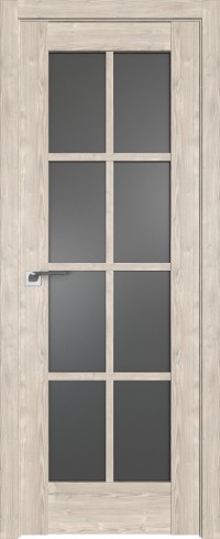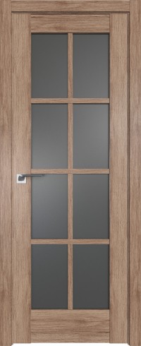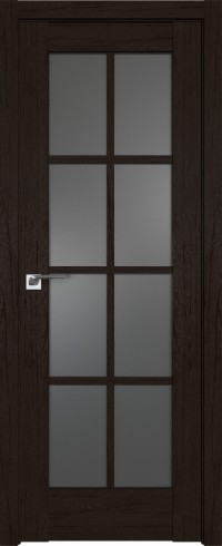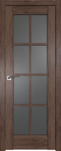 Межкомнатные двери модели 101XN — это классические, полуглухие полотна со стеклянной вставкой. Стекло декорировано деревянными рейками, образующими решётку прямоугольной формы. Варианты остекления: графит.