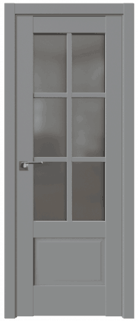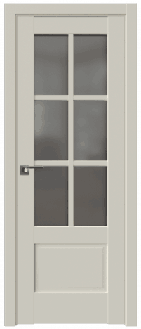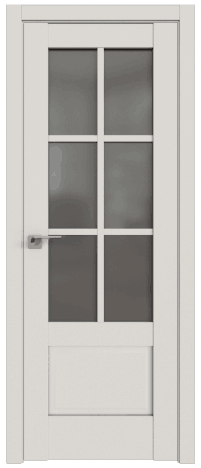 Полотно модели 103U состоит из поперечных царг с центральной стеклянной вставкой между ними. Декором стекла служат деревянные планки, образуя прямоугольную решетку. Цвет дверей и вставок можно подобрать индивидуально для любого интерьера. В базовом варианте двери комплектуются коробкой и наличниками.
