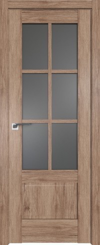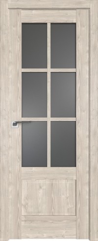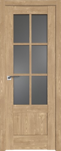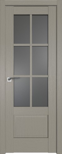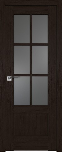 Полотно межкомнатной двери Profil Doors 103XN имеет царговую, полуглухую конструкцию со стеклянной вставкой. Стекло декорировано деревянными рейками, образующими решётку прямоугольной формы. Варианты остекления: графит.