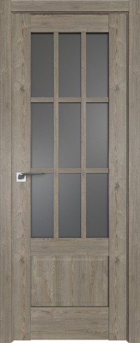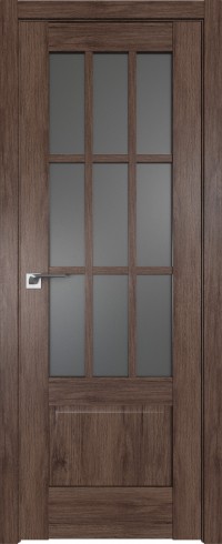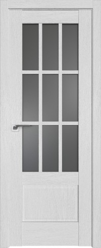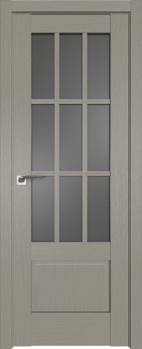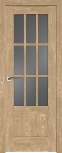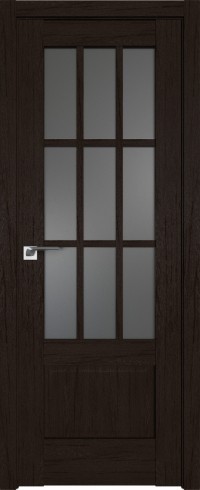 Полотно межкомнатной двери Profil Doors 104XN имеет царговую, полуглухую конструкцию со стеклянной вставкой. Стекло декорировано деревянными рейками, образующими решётку прямоугольной формы. Варианты остекления: графит.