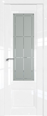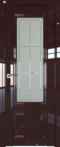 Межкомнатная дверь Profil Doors модели 2.103L имеет царговое полотно со стеклянной и филенчатой вставками. На матовое стекло нанесена гравировка.