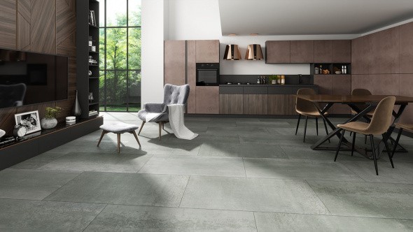 Эта необычная тенденция очень сильно повлияла на строительный сектор, в том числе на мир напольных поверхностей, что привело к дизайну коллекции керамогранитной плиты с «промышленной» текстурой.