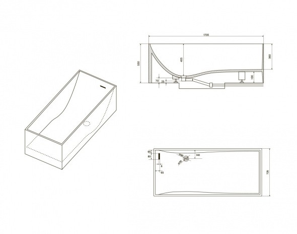 Эта ванна функциональна и эстетична одновременно. Её особенность – ассиметрично расположенный слив, выделяющий её из модельного ряда ванн NTbagno. Благодаря правильной прямоугольной форме, ванна «Триест» будет одинаково стильно смотреться как в центре санузла, так и у стены или в углу.